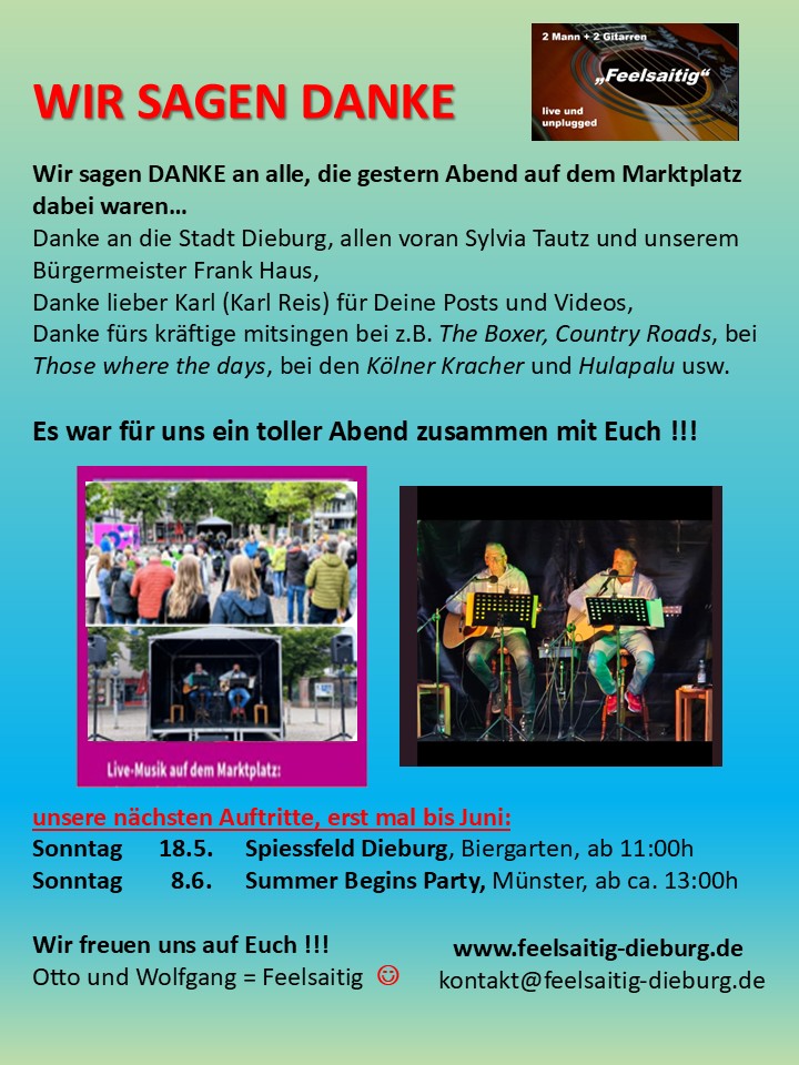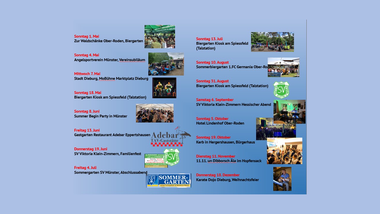 genießt Livemusik zum zuhören, mitsingen, schunkeln, … Termine 2026: Samstag[…]